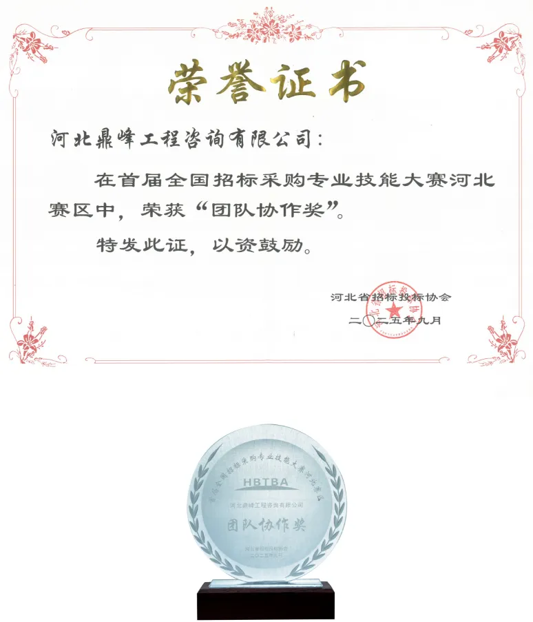在9月21日舉辦的“首屆全國招標(biāo)采購專業(yè)技能大賽河北賽區(qū)決賽暨首屆河北省招標(biāo)采購專業(yè)技能大賽”中,我公司憑借初賽階段出色的團(tuán)隊(duì)協(xié)作與專業(yè)表現(xiàn),榮獲“團(tuán)隊(duì)協(xié)作獎”;同時在決賽階段承擔(dān)協(xié)辦工作,以嚴(yán)謹(jǐn)、高效的服務(wù)保障賽事有序推進(jìn),踐行了招標(biāo)采購人所應(yīng)具備的責(zé)任與擔(dān)當(dāng)。